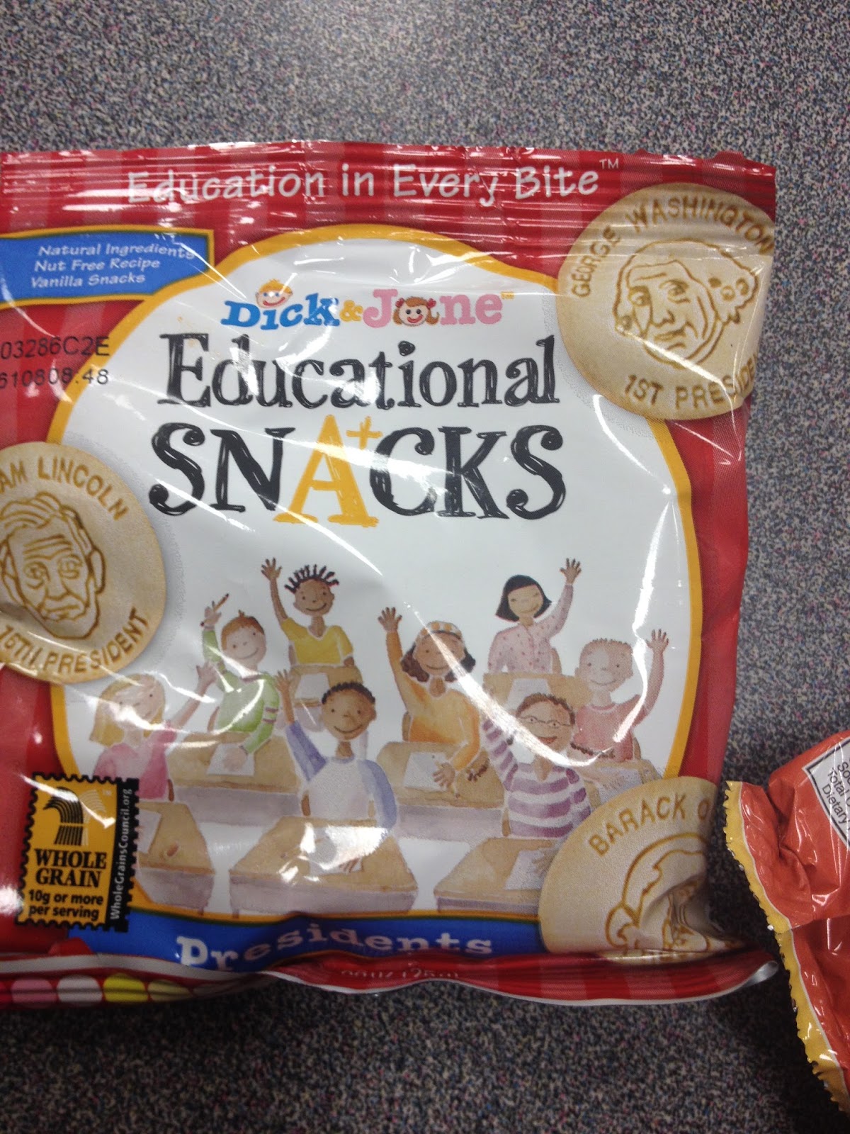 when my sweet son happily shared the back of his bag of presidential cookies.